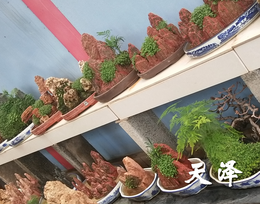 假山盆景是將名山大川中的景色濃縮到淺盆中,盛在幾案上,儼如一幅立體山水畫,使人如臨碧波綠水之前、名山大川之間,意趣盎然。